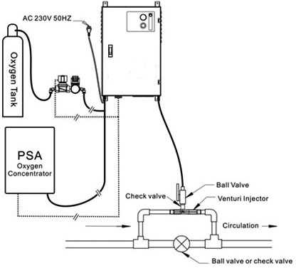 I generatori di ozono serie G sono dotati della tecnologia di generazione ozono con scarica a corona – Corona Discharge (CD). Il sistema è stato progettato con design modulare. Il modulo di generazione ozono CD è prodotto con tubazione in cristallo al quarzo con resistenza ad alta temperatura e ad alta tensione, tubo in acciaio 316 L, raccordi in Kynar (PVDF), tenute “O” ring in VITON, dissipatore in alluminio e alimentatore ad alta tensione dedicato ad alta frequenza fuso in un unico pezzo per una maggiore affidabilità.